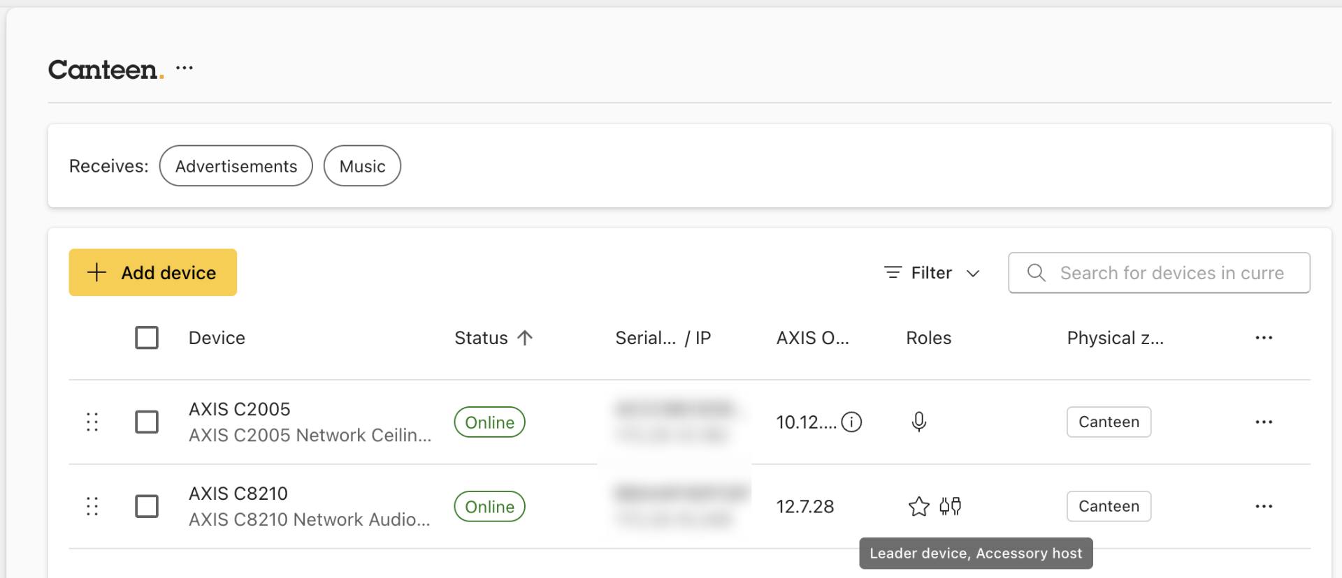 A new "All devices" page has been added for physical zones. This gives you a convenient overview of all devices in the audio site. It is also where you now find your unassigned devices.